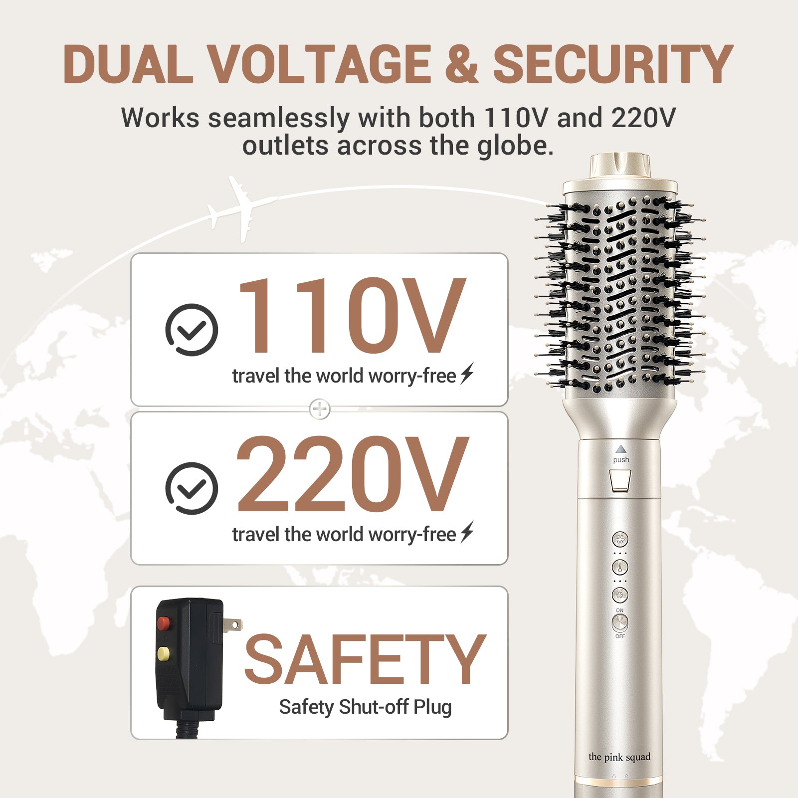 With dual voltage (100–240V), this air styler is ideal for international travel. A compact storage bag keeps all 8 attachments neatly organized, making it easy to style anywhere, anytime.
